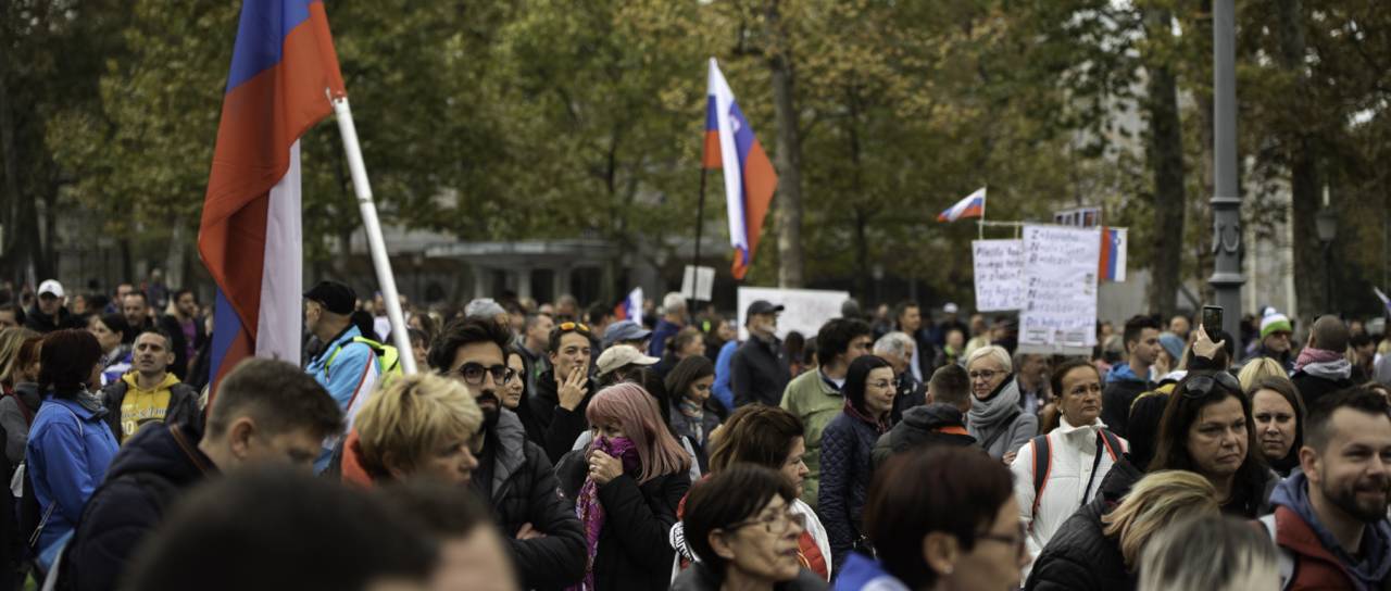 16.10 - Zoran Stevanović je nagovoril protestnike, med drugim je izreke naslednje stavke: »Sreda je dan, ki ga je režim zasovražil. Jutri ustavno sodišče odloča o ustavnosti pogoja PCT. Jutri je pomemben dan. PCT pogoj je zločin proti lastnemu ljudstvu. In to je odločitev, ki jo jutri pričakujemo od ustavnega sodišča.«