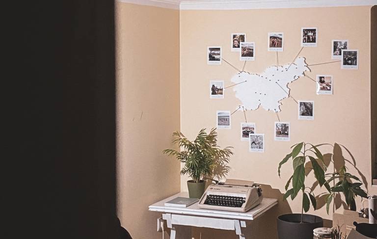 »Ker sva bila ravno v procesu izdelave zemljevida sveta, sva mimogrede izrezala še zemljevid Slovenije in še isti dan ugotovila, kako zelo fotogenična je ta naša 'kura',« razlagata. Takoj po odprtju občin sta se lotila raziskovanja Slovenije.