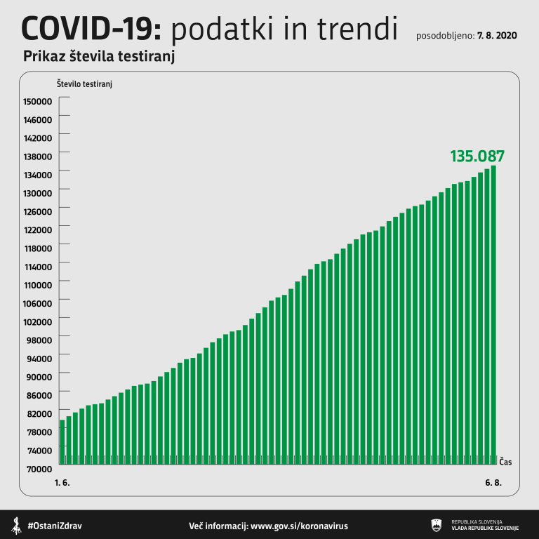 Včeraj, 6. avgusta 2020, so v Sloveniji opravili 753 testiranj na novi koronavirus.