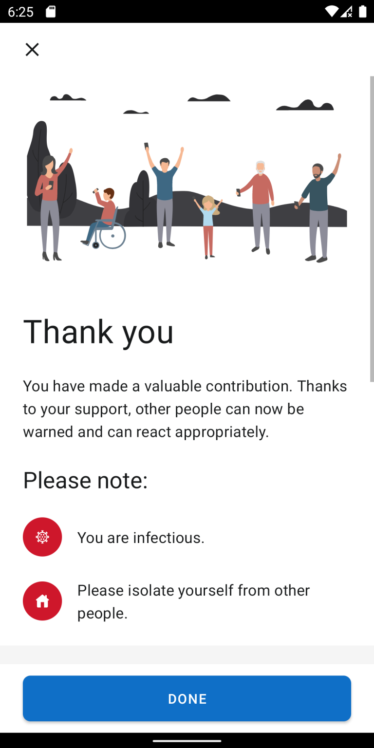 Če bo uporabnik ugotovil, da je okužen, se bo odločil ali bo svojo okužbo vnesel v aplikacijo aplikacijo. Če se za vnos odloči, pa bo njegov vnos v aplikacijo moral potrditi Nacionalni inštitut za javno zdravje za zmanjšanje zlorab in lažnih informacij.