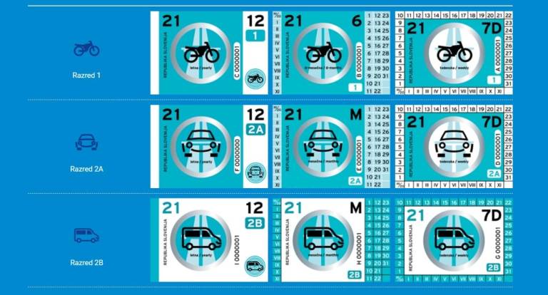 Prav tako ni sprememb glede cestninskih razredov, v katere se uvrščajo vinjetna vozila. S 1. decembrom je v prodaji devet različnih vrst vinjet za leto 2021: letne, mesečne in tedenske vinjete za cestninski razred 2A (osebna vozila) in 2B (kombinirana vozila) ter letne, polletne in tedenske vinjete za prvi cestninski razred (motorna kolesa).