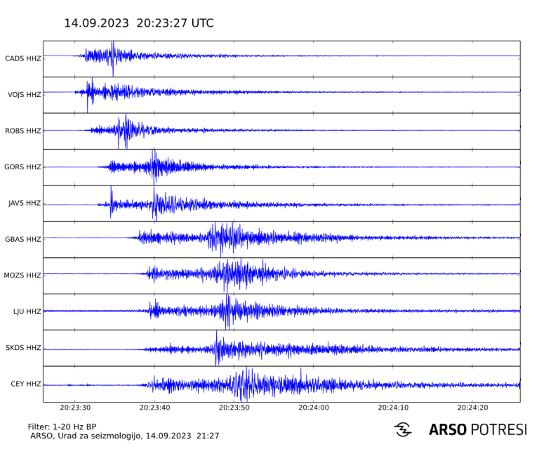Seizmografi državne mreže potresnih opazovalnic so včeraj ob 22.23 zabeležili šibek potresni sunek, magnitude 2,1.