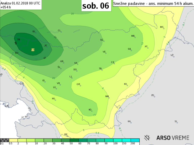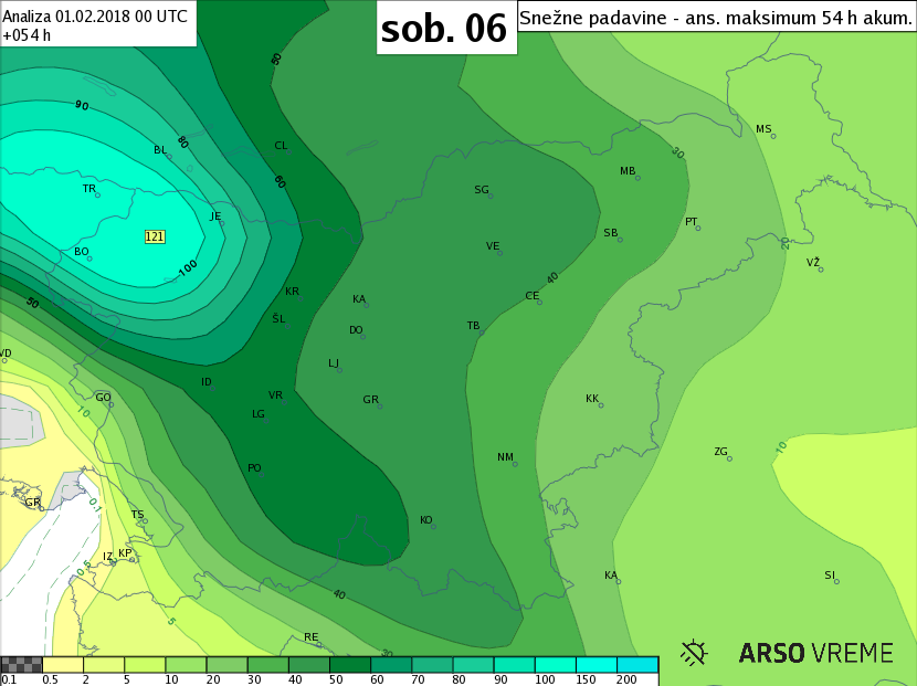 Agencija Republike Slovenije za okolje je pripravila tri scenarije za količino snežnih padavin do sobote zjutraj - najbolj verjetnega in obe skrajnosti. Bomo videli, kateri se bo dejansko uresničil.