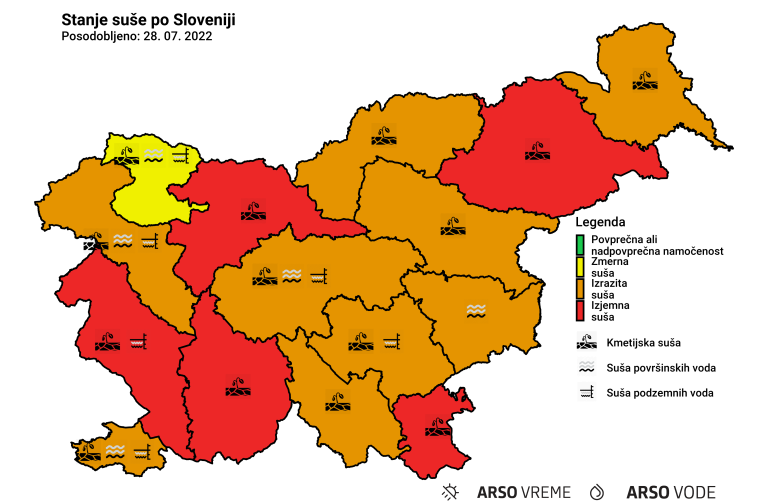 Zmerno sušne razmere so v zgornjesavski regiji in v Spodnjem Posavju, drugod pa vztrajajo izrazito sušne razmere.