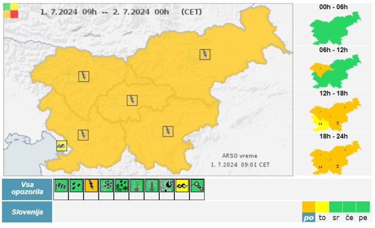 Zaradi možnosti močnejših neviht popoldne v večjem delu države je Agencija za okolje izdala oranžno vremensko opozorilo.