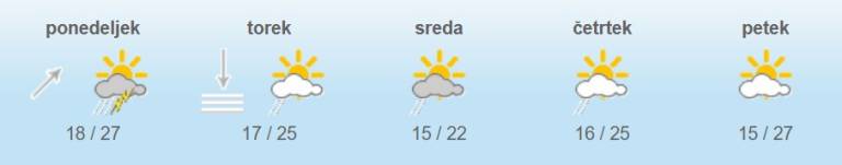 V sredo bo pretežno oblačno. Predvsem na severozahodu bodo občasno manjše krajevne padavine. V četrtek bo več sonca, popoldne bo lahko nastala kakšna ploha.