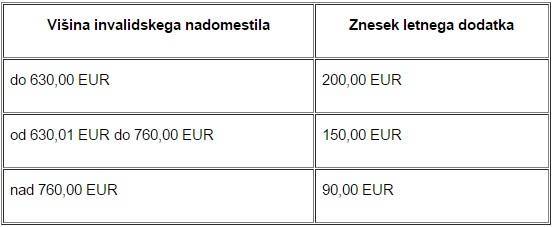 Do letnega dodatka pa so upravičeni tudi tisti, ki prejemajo invalidsko nadomestilo. Ti bodo prejeli od 90 do 200 evrov dodatka.