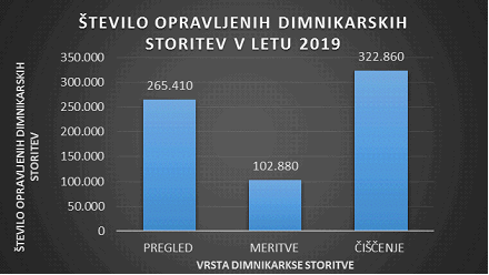 Inšpektorji so v letu 2019 obravnavali in rešili skupaj 526 prijav s področja izvajanja dimnikarskih storitev, prejeli pa so jih 633. Inšpektorji so 99 prijav zaradi suma ogroženosti zdravja in življenja ljudi, obravnavali prioritetno.