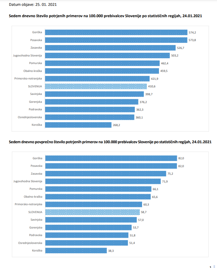 V Sloveniji so včeraj, 24. januarja, opravili 2734 testiranj na koronavirus in potrdili 293 novih okužb, gre za 10,7-odstotni delež.