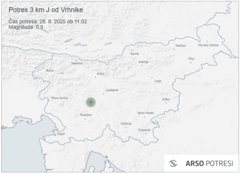 Danes, 28. avgusta 2025, ob 11.02 so seizmografi zaznali šibek potres z nadžariščem približno tri kilometre južno od Vrhnike.