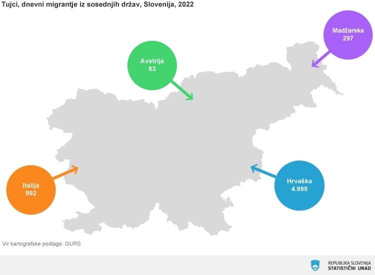 Največ tujcev dnevno prihaja na delo v Slovenijo iz sosednje Hrvaške, skoraj 5000, od tega je bila večina moških, žensk je bilo približno četrtina.
