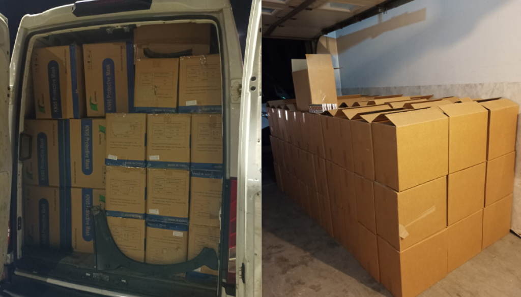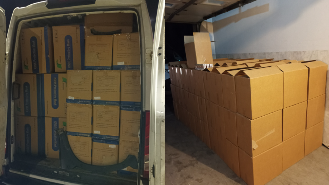 Med kontrolo pa je bilo ugotovljeno, da so za dvema vrstama kartonov zaščitnih mask, naloženi kartoni, v katerih so se nahajali cigareti. Poleg blaga je bilo nato zasežen tudi kombi.