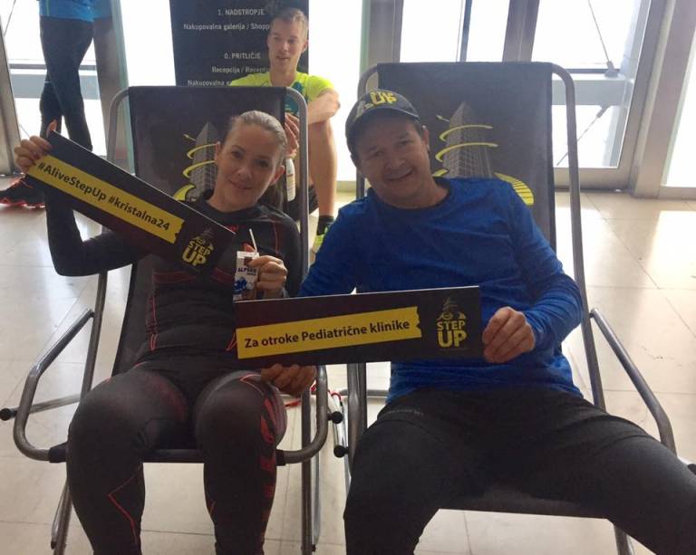 »Ene štenge so bile premalo,« pravi Beba Ščap, Andrej Težak Tešky pa doda: »Štajerke nimajo nikoli dovolj.« In očitno je res. Tokrat sta dva humanitarca združila moči. S skupnim podvigom Alive Step Up - Tek na Kristalno palačo zbirata denar za otroke v Pediatrični kliniki.