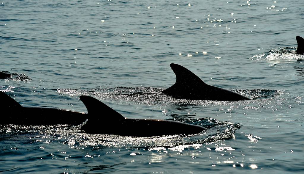 Jata delfinov je zjutraj zaplavala v Piranskem zalivu.