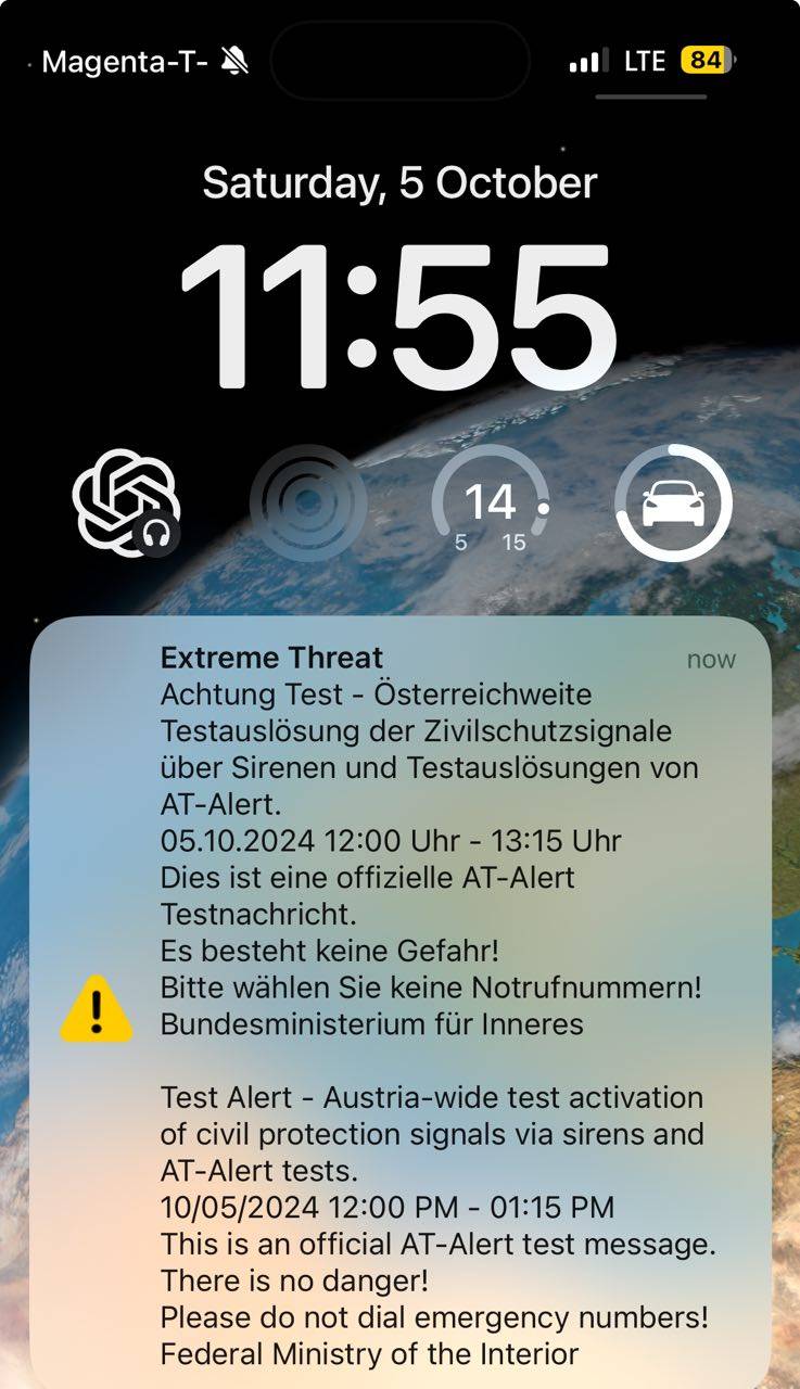 Mnogi prebivalci vzhodne Slovenije, predvsem v obmejnih regijah, so v zadnjih dneh na svoje mobilne telefone prejeli nenavadna SMS obvestila. Gre za testna sporočila, ki jih pošiljajo avstrijske oblasti v okviru preizkušanja svojega sistema za obveščanje prebivalcev. Testiranje bo potekalo od 9. septembra do 5. oktobra 2024, s čimer Avstrija preverja delovanje sistema za pravočasno alarmiranje ob naravnih nesrečah ali drugih nevarnostih.