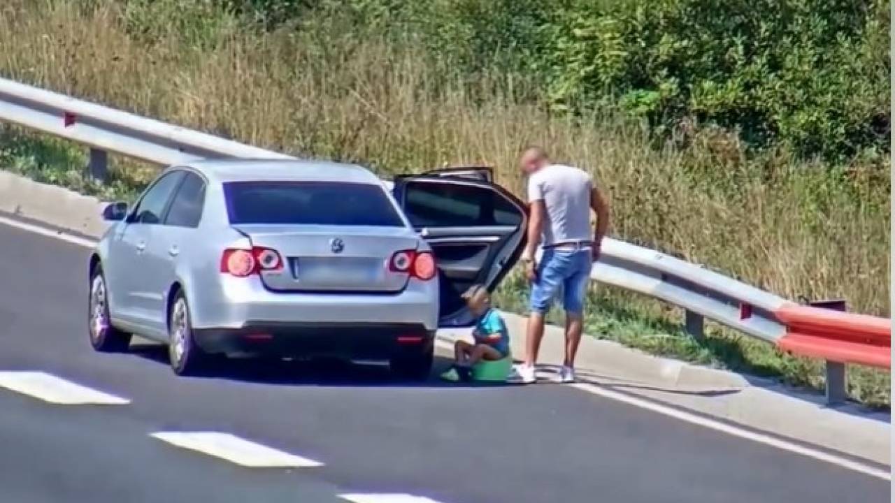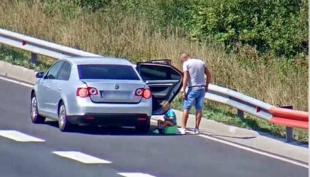 Po spletu je zakrožil posnetek Družbe za avtoceste v Republiki Sloveniji, iz katerega je razvidno, da se je tuji voznik ustavil na pospeševalnem pasu in otroku sredi ceste postavil kahlico.