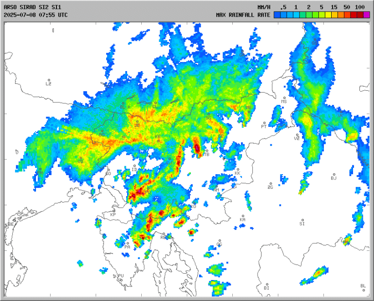 Ponoči je nevihtna linija prinesla kar nekaj padavin predvsem vzhodni polovici države, kjer je večinoma padlo med deset in 40 milimetrov dežja. Nekaj močnejših neviht je bilo tudi v južni Sloveniji.