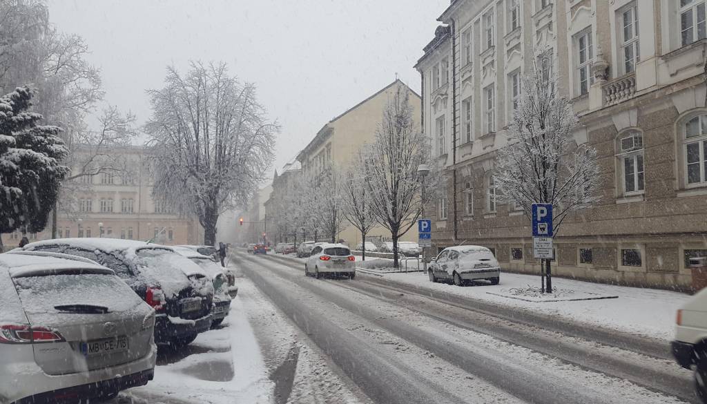 Četudi so vremenoslovci napovedovali, da bodo padavine danes ponehale, pa ponekod Sloveniji sneži. Nekaj snega je padlo tudi v Mariboru in na območju Pomurja, kjer pa se po podatkih sneg oprijema cestišča.
