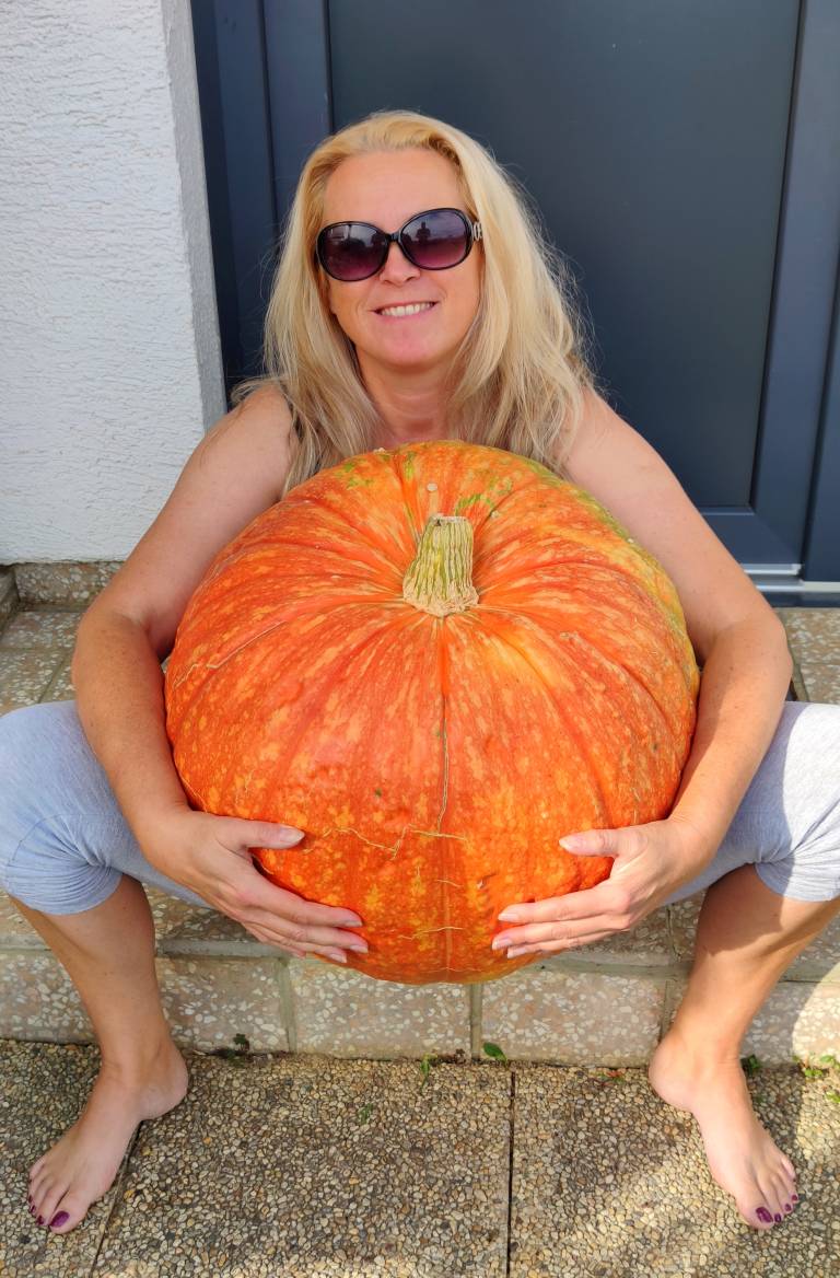 Eva Mori iz Kicarja pa je poslala dve fotografiji pridelka, na prvi lahko vidite mega bučo, na drugi pa paradižnika velikana.