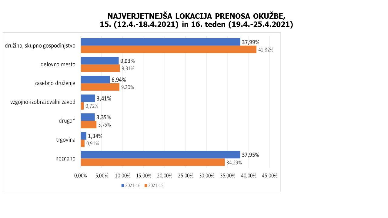 Najverjetnejši vir okužbe je še vedno lokalni vir, predvsem družina oziroma skupno gospodinjstvo. Sledi delovno mesto, zasebna druženja, izobraževalne ustanove in trgovine, je pojasnila Grilčeva. Veliko virov okužbe ostaja neznanih.
