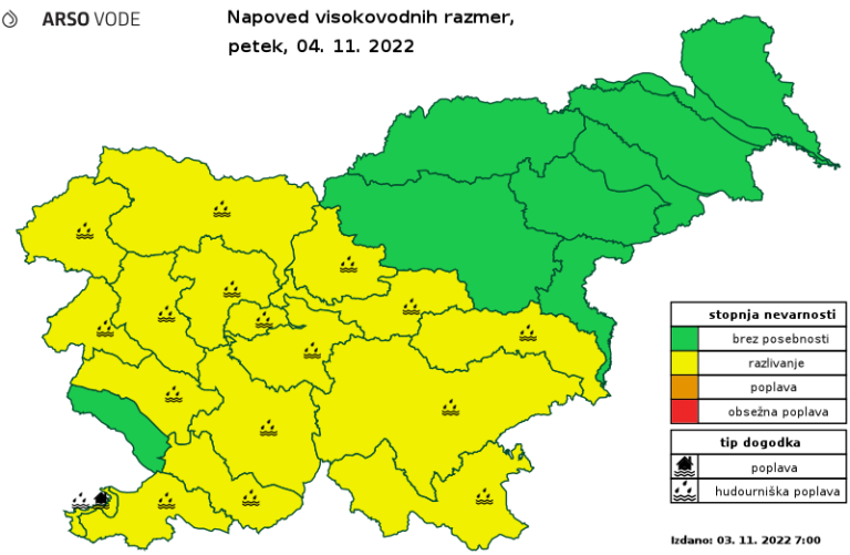 Agencija za okolje ob tem opozarja pred naraščanjem hudourniških vodotokov. Na severozahodu, jugozahodu in v osrednji Sloveniji so ob hudourniških vodotokih možne poplave meteorne in zaledne vode.
