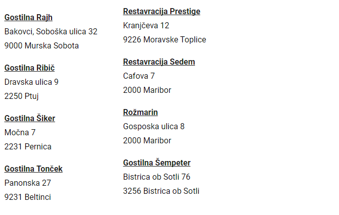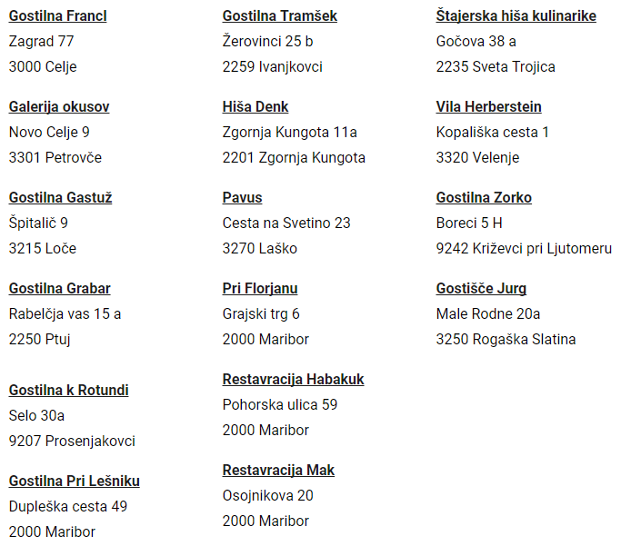 Izbrane restavracije iz VZHODNE SLOVENIJE: