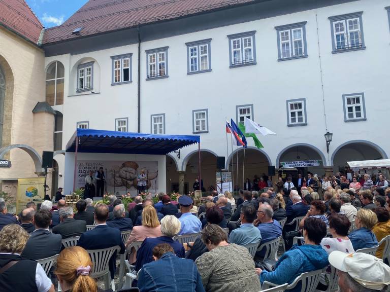 Županja Mestne občine Ptuj na začetku svojega govora poudari, da je kot županja izjemno ponosna, da ravno v najstarejšem mestu v Sloveniji gostimo tako pomemben festival.