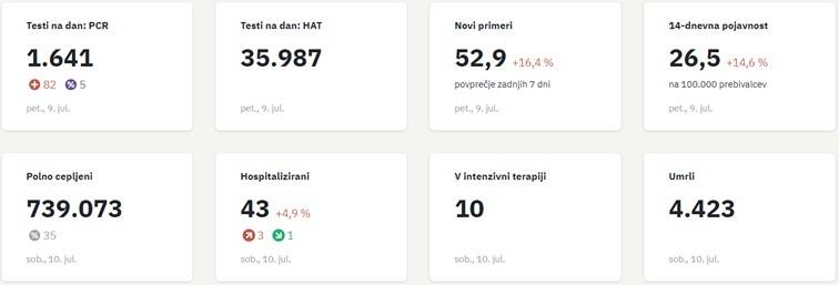 V Sloveniji so včeraj, 9. julija, opravili 1641 PCR testiranj na koronavirus in potrdili 82 novih okužb, gre za pet-odstotni delež okužb.
