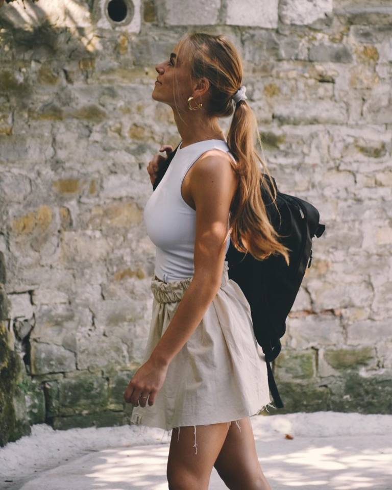 »Hja, prvi začetki šivanja so bili že v srednji šoli, ampak nič kaj resni. S šivanjem se namreč ukvarja moja mami. Tudi ona je oblikovalka oblačil. Mene pa to do lani nekako sploh ni zanimalo. Vedno je bil večji fokus na plesu. Ker pa smo imeli na faksu veliko projektov, kjer je bilo treba oblačilo oblikovati in ga nato sešiti, sem se seveda za vse težave pri šivanju obrnila na mami. Tako sem počasi dobivala znanje in idejo, da bi lahko začela oblačila izdelovati tudi sebi.«