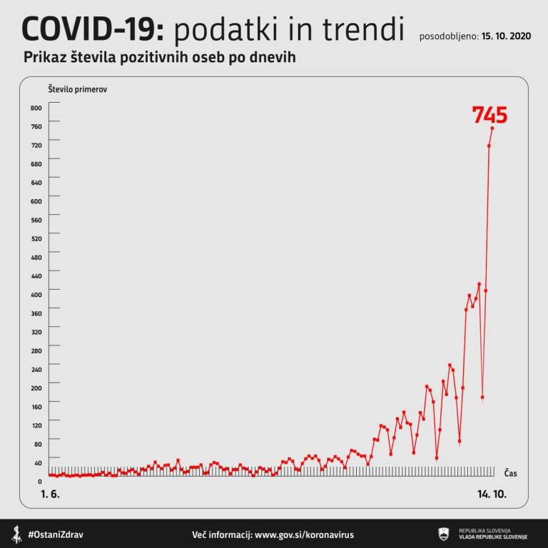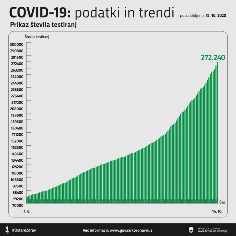 Z Vlade Republike Slovenije so sporočili sveže podatke o trendu obolelosti s koronavirusom v Sloveniji.