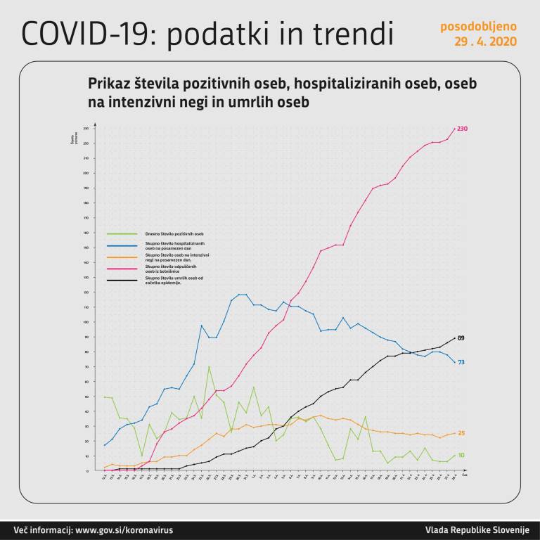 Znani so novi podatki o številu okuženih s koronavirusom v Sloveniji. Številka je od včeraj narasla za deset, tri osebe so umrle, sedem so jih odpustili iz bolnišnice.