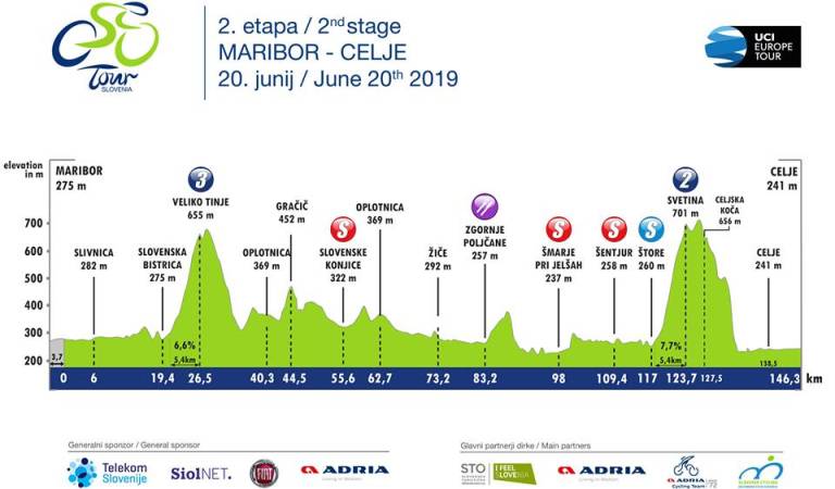V zaključku 146,3 kilometra dolge druge etape Dirke po Sloveniji s startom v Mariboru in ciljem v Celju kolesarje čaka prvi resen vzpon.