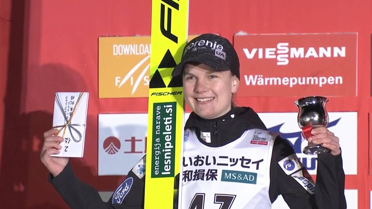 Štiriindvajsetletnica se je na skakalnici Okurajama razveselila prvih stopničk v letošnji sezoni, še 17. v karieri pa je stala na odru za najboljše tri. To so bile že 70. stopničke Slovenk v svetovnem pokalu.