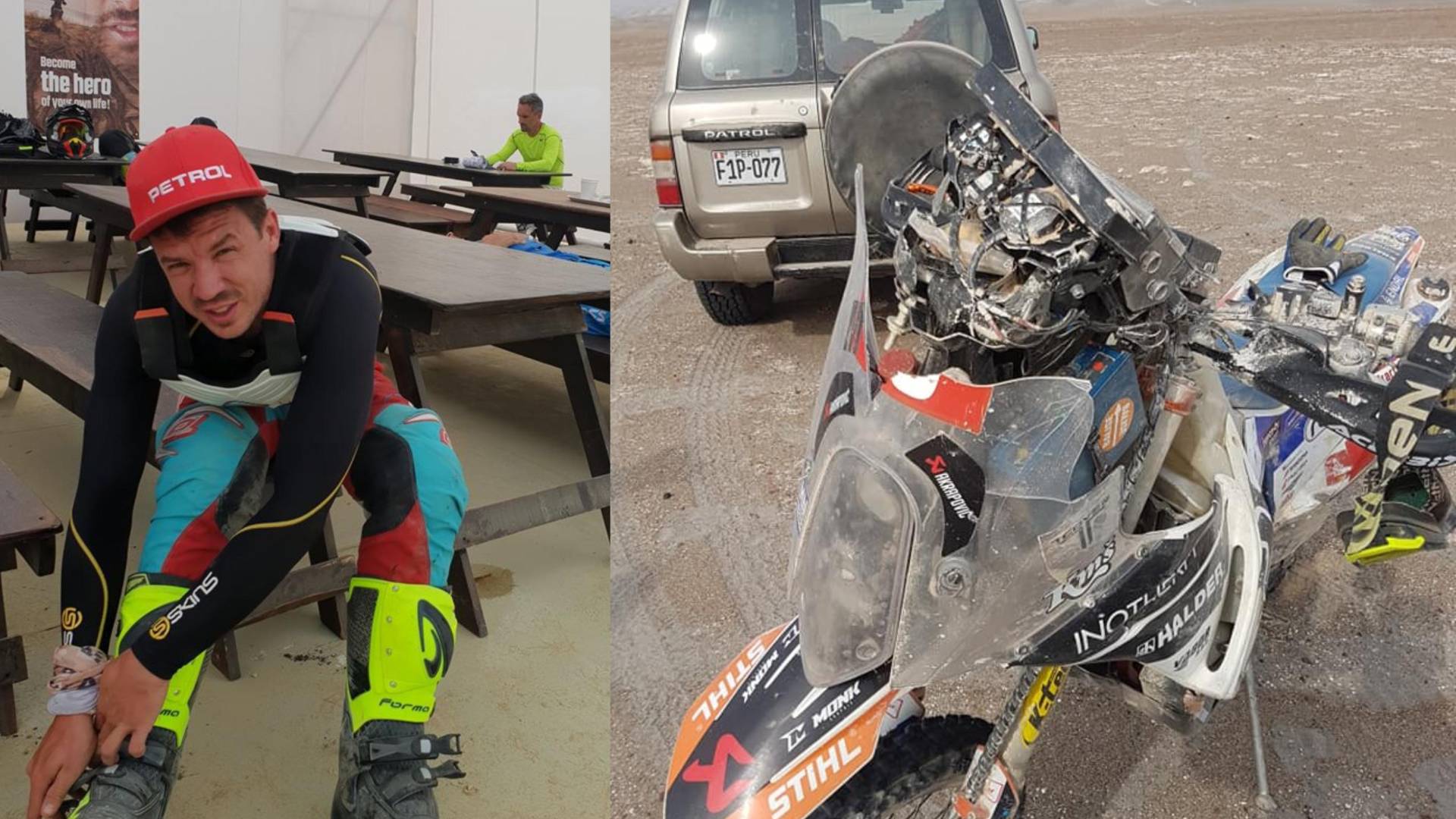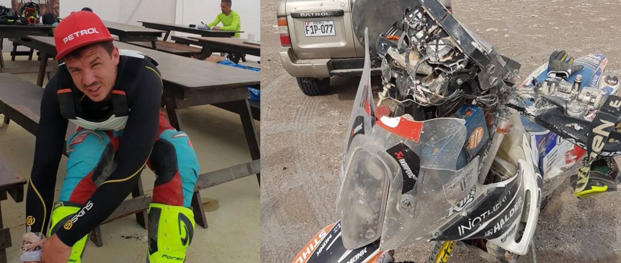 Simon Marčič je na maratonski etapi na jugu Peruja v sklopu relija Dakar padel in si poškodoval motor. A oboževalcem že sporoča, da je z njim vse v redu in se bori naprej.