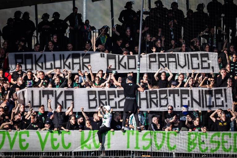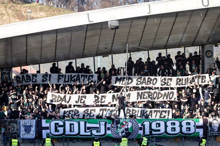 31' Po polurnem protestu sta se oglasili tudi navijaški skupini Viole in Green Dragons.