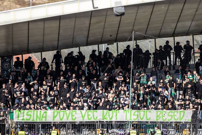 23' Kljub polnim tribunam v Ljudskem vrtu vlada mrtvilo, saj navijaški skupini obeh klubov s tišino protestirata proti novemu zakonu o navijačih.