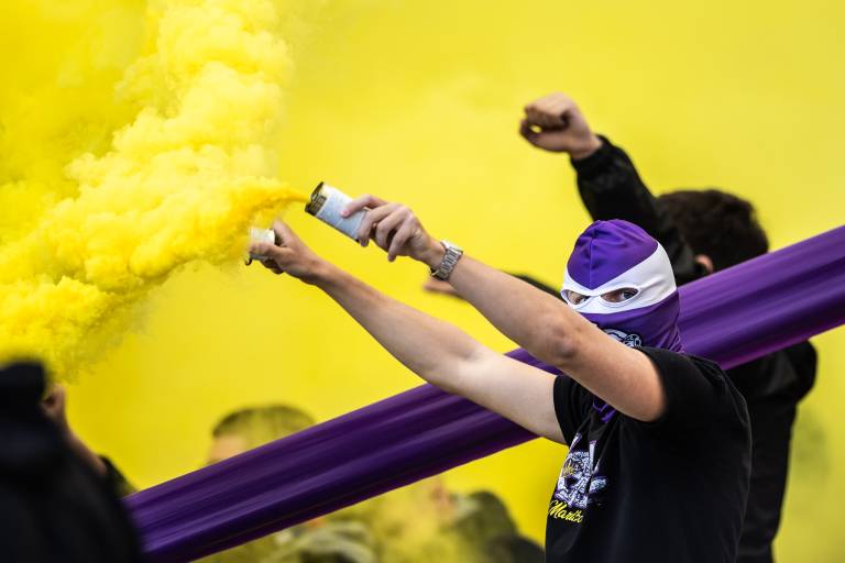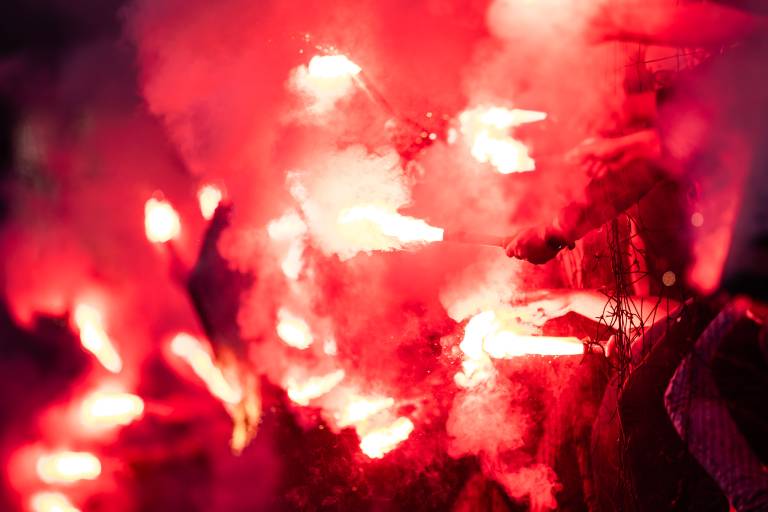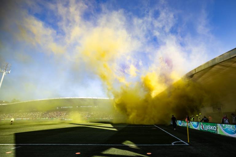 40' PREKINITEV TEKME! Sodnik David Šmajc je prekinil derbi zaradi uporabe pirotehnike s strani navijaške skupine Viole.