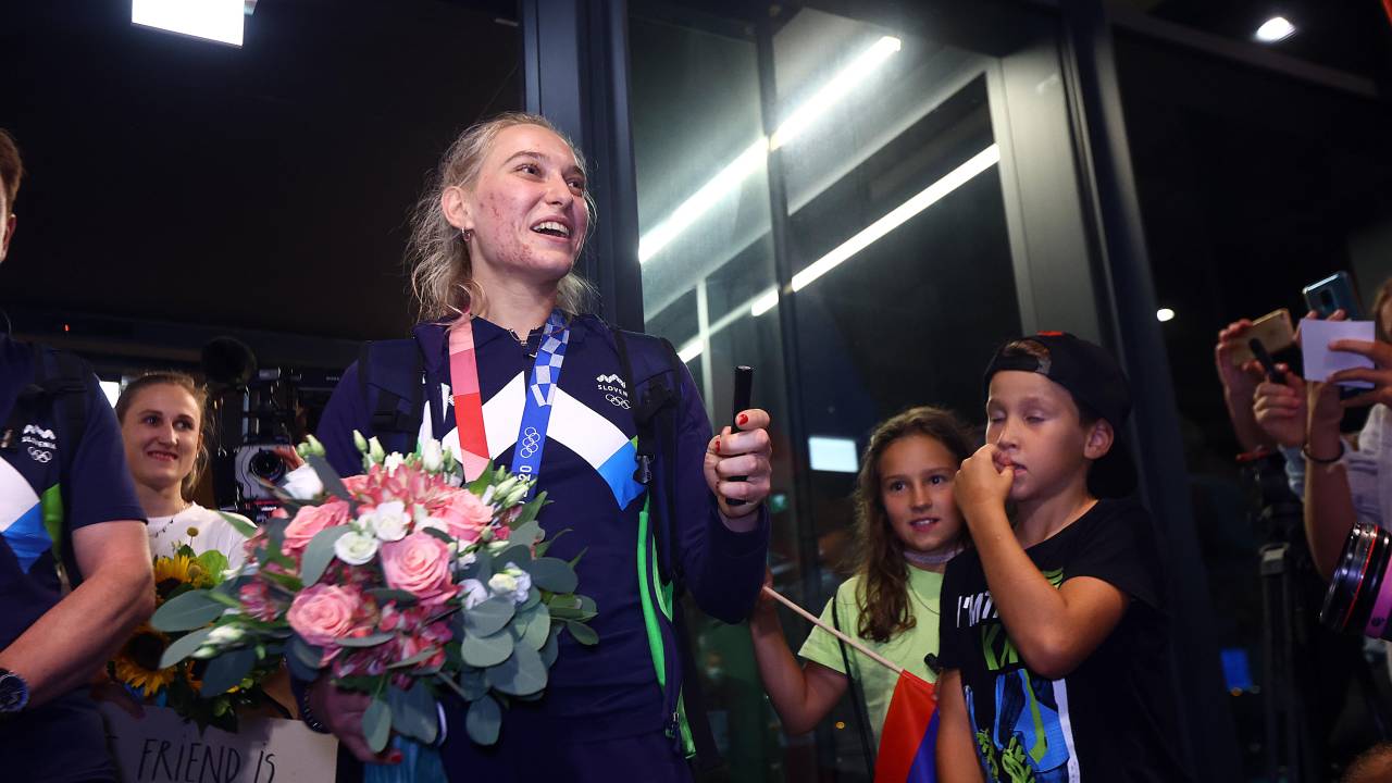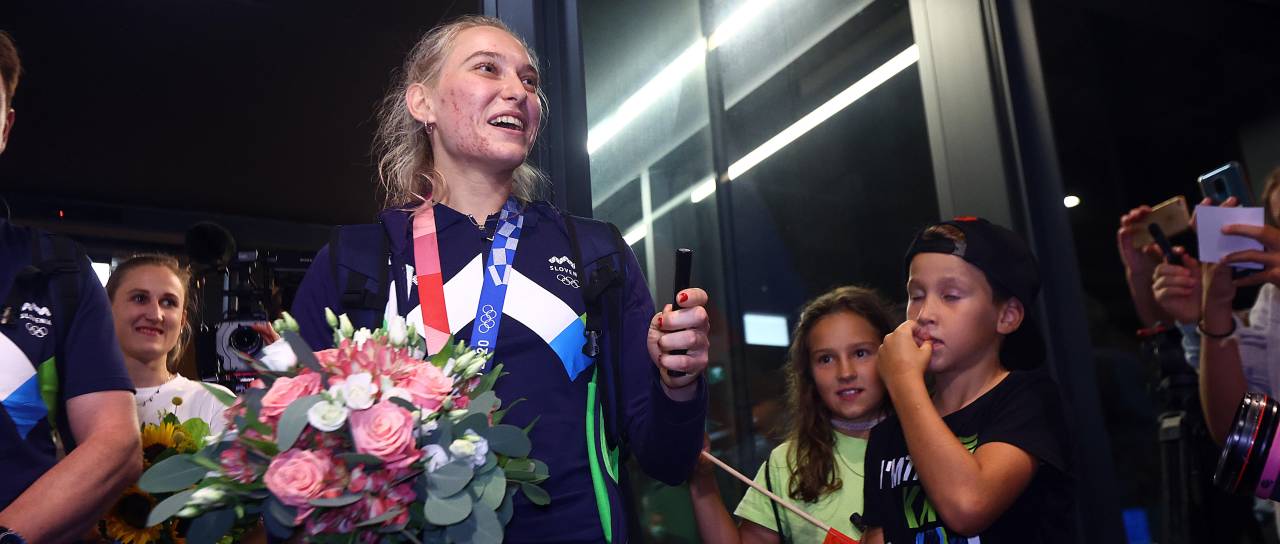 Mlado plezalko so včeraj pozno zvečer pričakali njeni navijači in najbližji.