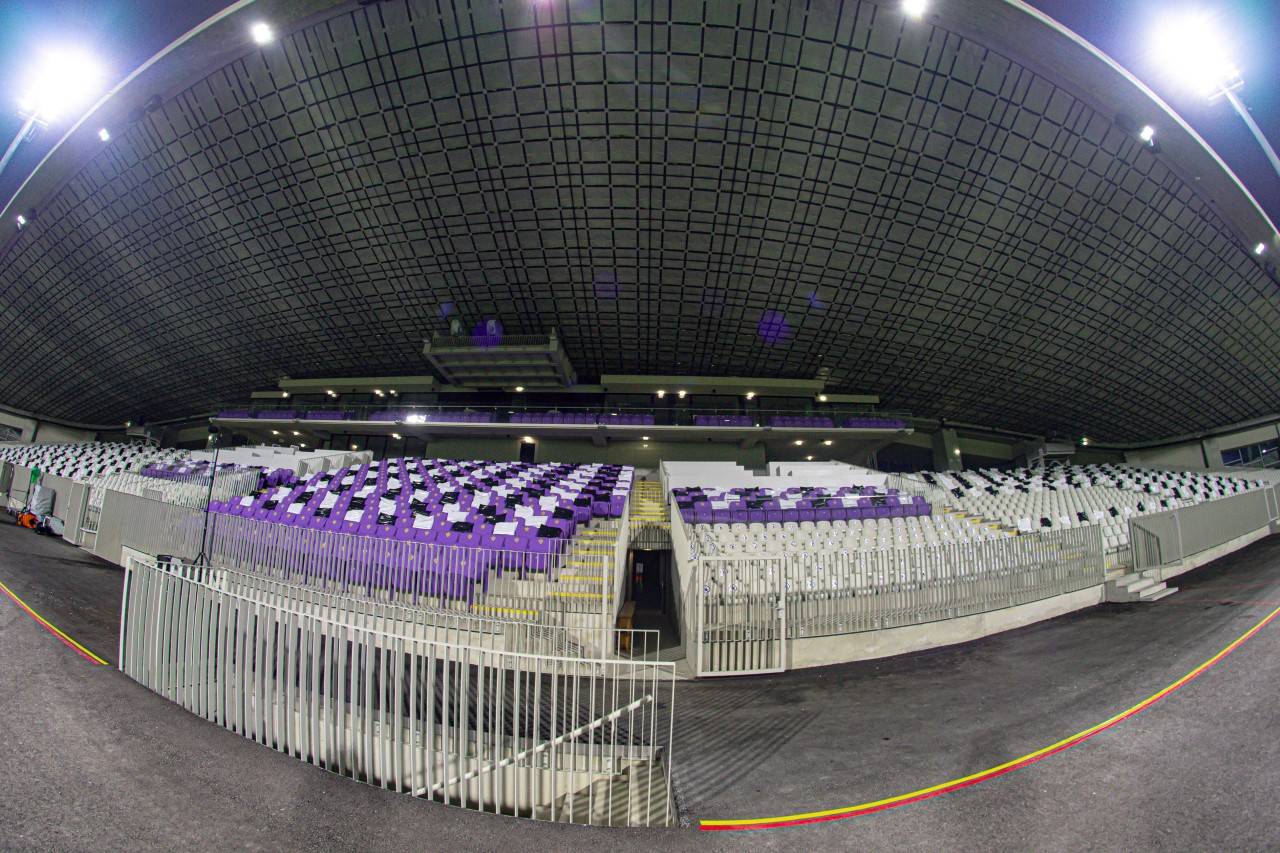 Sedeži na tribunah Ljudskega vrta so črno-belo podobo dobili zaradi zadnjih ukrepov proti širjenju koronavirusa.