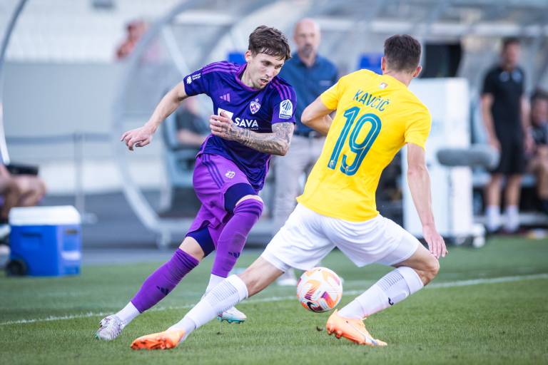 2' PRILOŽNOST! Ljubljančani so hitro zapretili preko leve strani. Po podaji Jakoslava Stankovića je prodrl Matija Kavčič, po njegovi podaji pa Luka Štor pred golom ni najbolje zadel okroglega usnja.