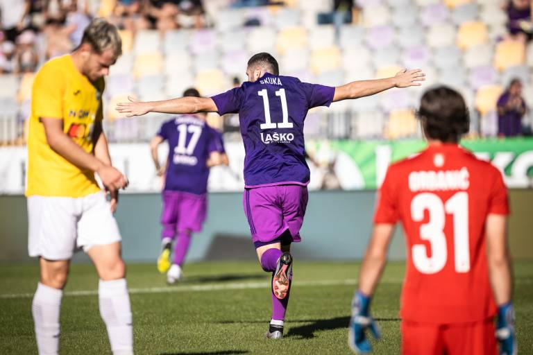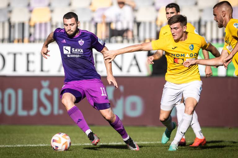 29' Marko Božić je krenil po levi, nato pa s povratno podajo našel Aljaža Antolina. Prekmurec med vijoličastimi je streljal z levico, žogo pa je poslal visoko preko vrat.