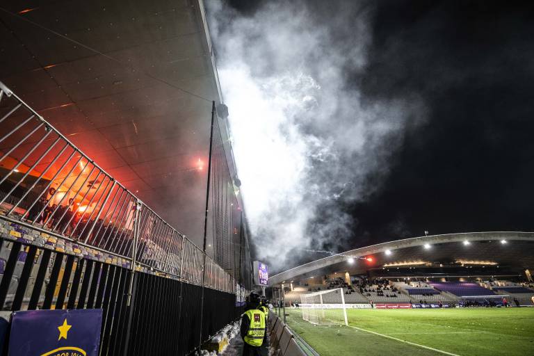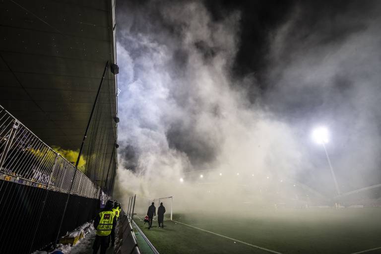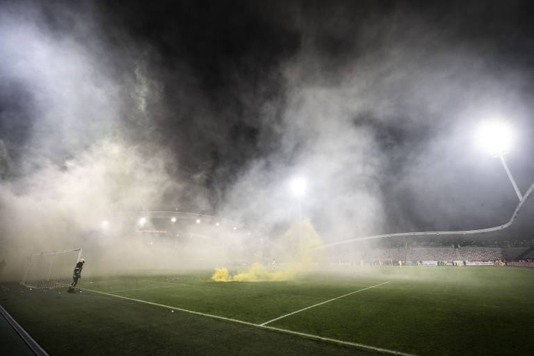 43' Viole so prižgale bakle. Igrišče je v dimu, tekma je prekinjena.