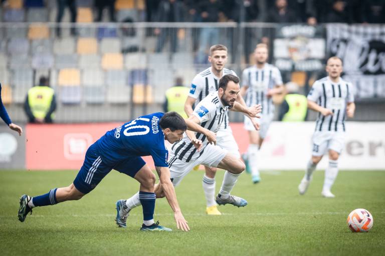55' PRILOŽNOST! Matic Maruško ni kaznoval nezbranosti domače obrambi. Vezist črno-belih je imel v kazenskem prostoru veliko prostora, a je žogo poslal mimo vrat.