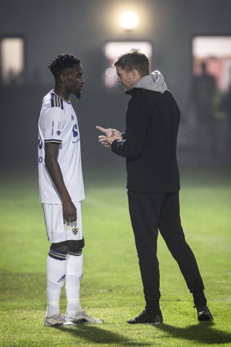 46' DVE MENJAVI ZA MARIBOR: Z igrišča odhajata Rok Maher in Martin Milec. V igro vstopata Antoine Makoumbou in Ilija Martinović.