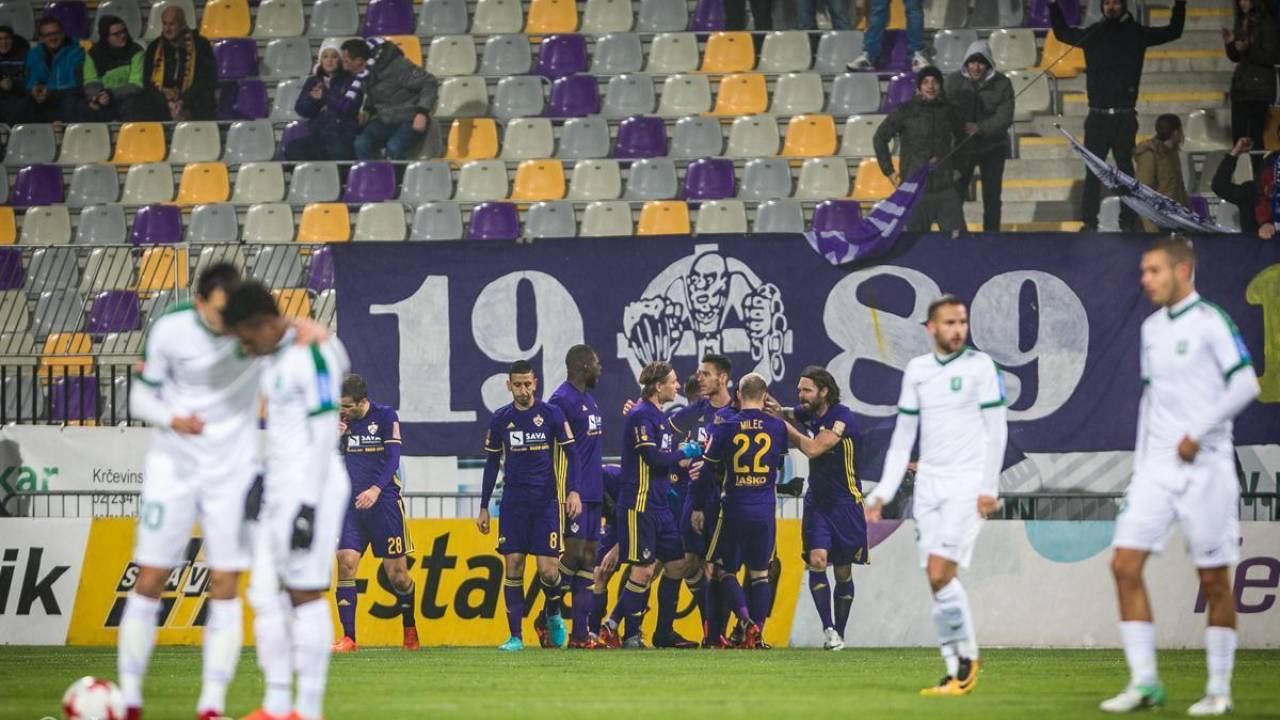 39'. Ufffff, kaj je sedaj zapravil Vršič. Povsem sam je krenil proti vratom Olimpije, nato pa preveč okleval, žogo slabo zadel in ostalo je pri minimalnem vodstvu vijoličastih.