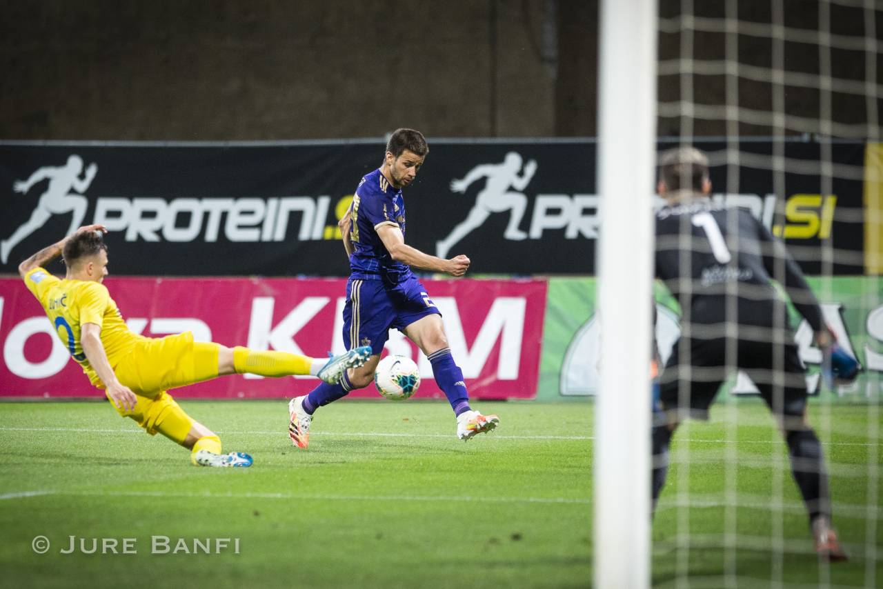 Po kotu v 15. minuti podaja po tleh do Kronavetra, Karič Šoštarič z drsečim posredovanjem blokiral za naslednji kot.