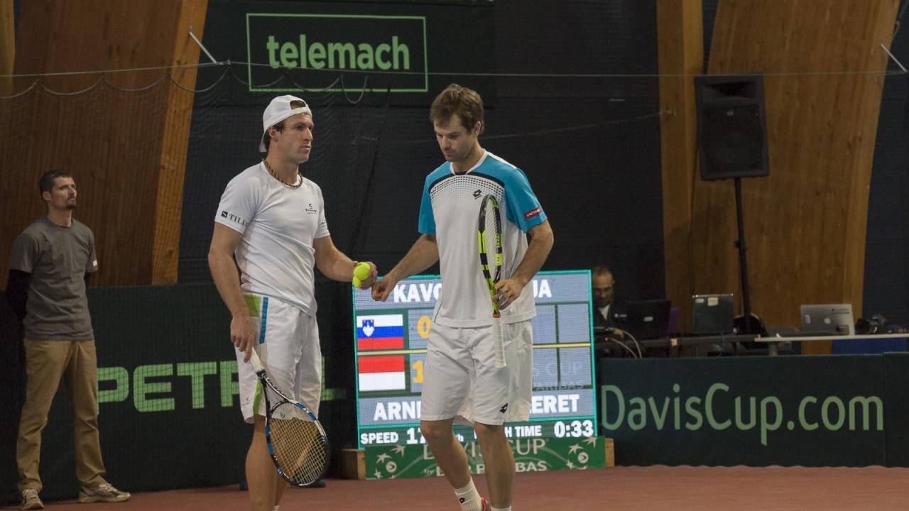 Čeprav je Slovenija veljala za favoritinjo prvega kroga Davisovega pokala, bosta morala jutri, ko sta na sporedu še dva dvoboja posameznikov, najboljša slovenska igralca Grega Žemlja (150. ATP) in Blaž Kavčič (193.) dati vse od sebe. Tekmo si lahko brezplačno ogledate v dvorani ŽTK na Taboru.