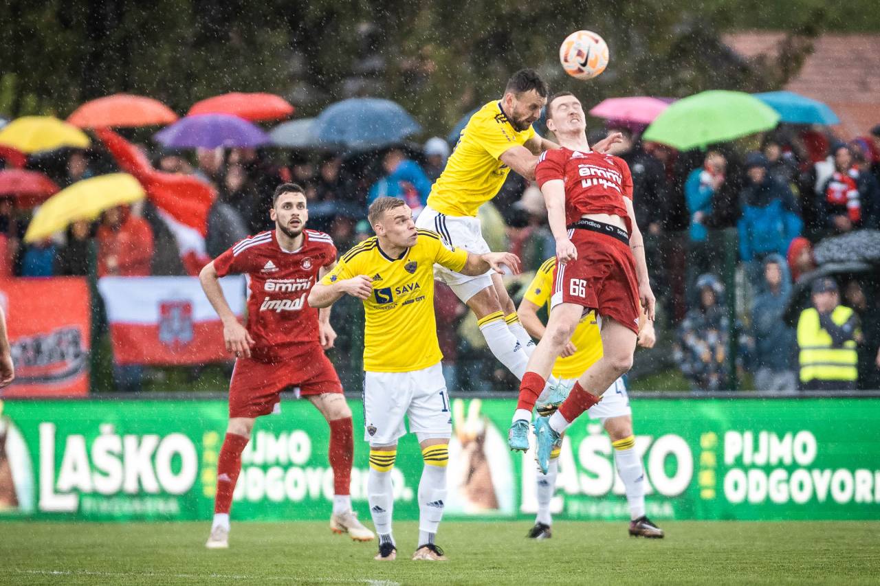 83' PRILOŽNOST! Naveza Nejc Bračko - Lan Vidmar je bila nevarna še drugič v nekaj minutah, Vidmar je po prostem strelu Bračka z glavo streljal preko vrat Ažbeta Juga.