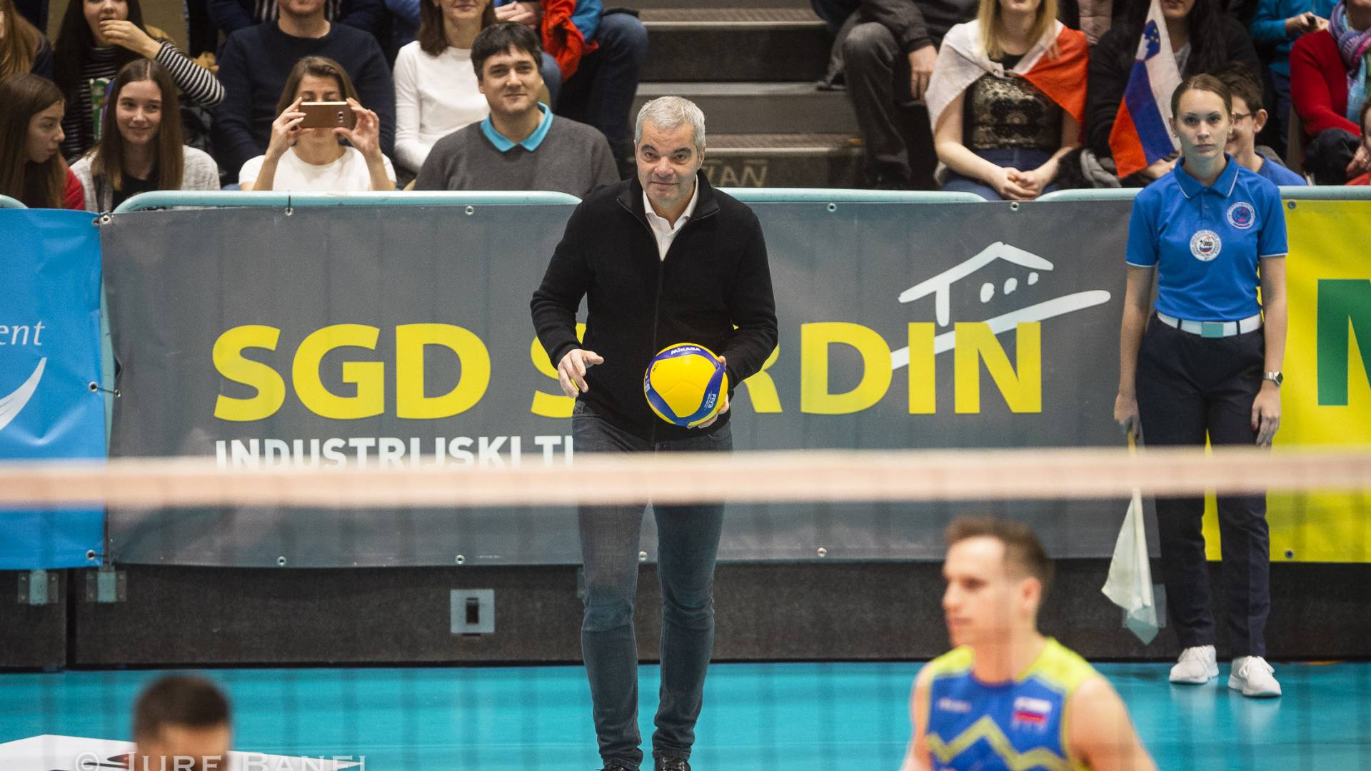 Slovenci so za popotnico odpravili Nizozemce. Pred polno dvorano Tabor je prvo žogo (s skok servo) uspešno serviral mariborski župan Saša Arsenovič.