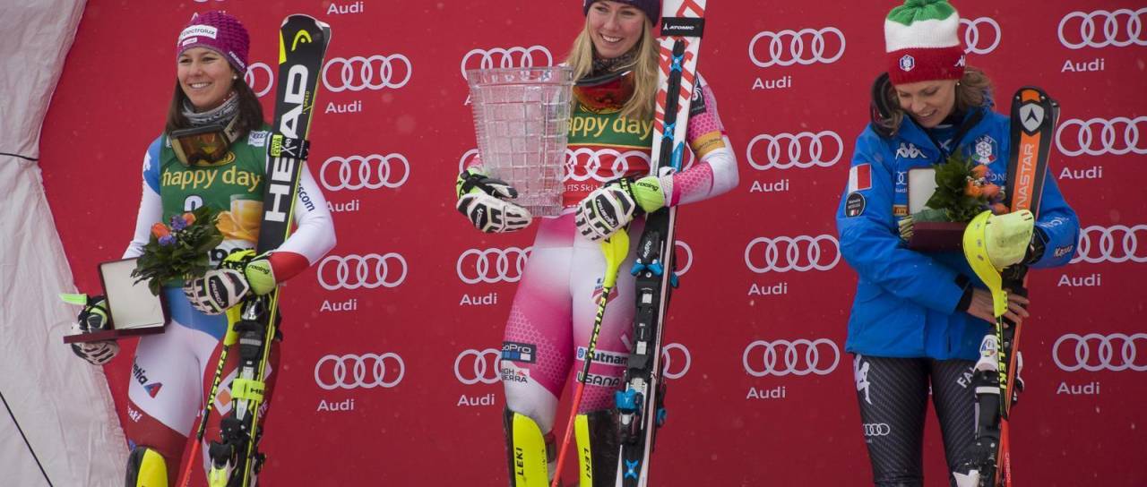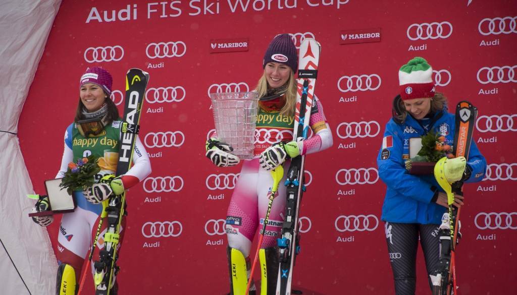 Kljub zlomljenemu količku je Mikaela Shiffrin postala zmagovalka slaloma Zlate lisice.